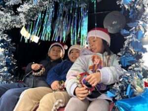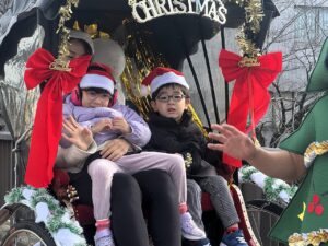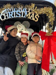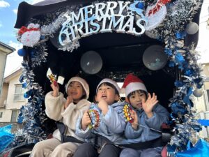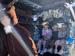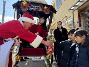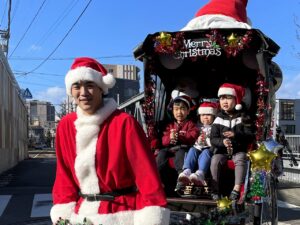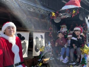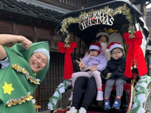 クリスマス人力車の登場に大喜び!